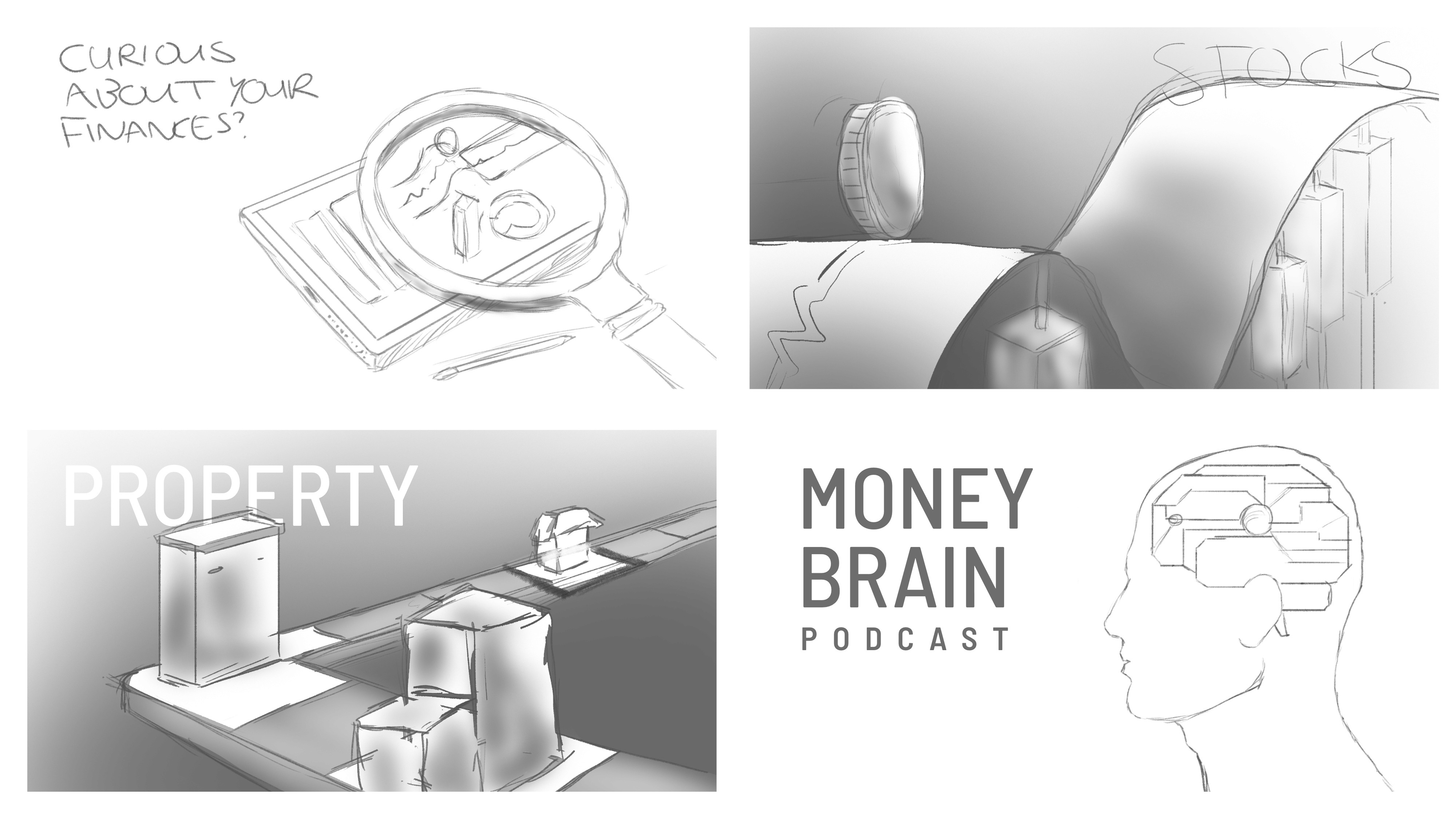 This project was created as part of my submission to Ben Marriott’s Design Breakthrough course, which explores the creative process from initial idea through to final execution. Throughout the course, I developed professional techniques and reliable workflows that have significantly strengthened my approach to design. The final brief was to create a series of style frames developed from scratch using methods such as word association, moodboarding, storyboarding, and colour studies. I then extended the project further by animating the final style frames into a cohesive video concept. The concept centres on an introductory sequence for a podcast aimed at promoting financial literacy among young adults.
